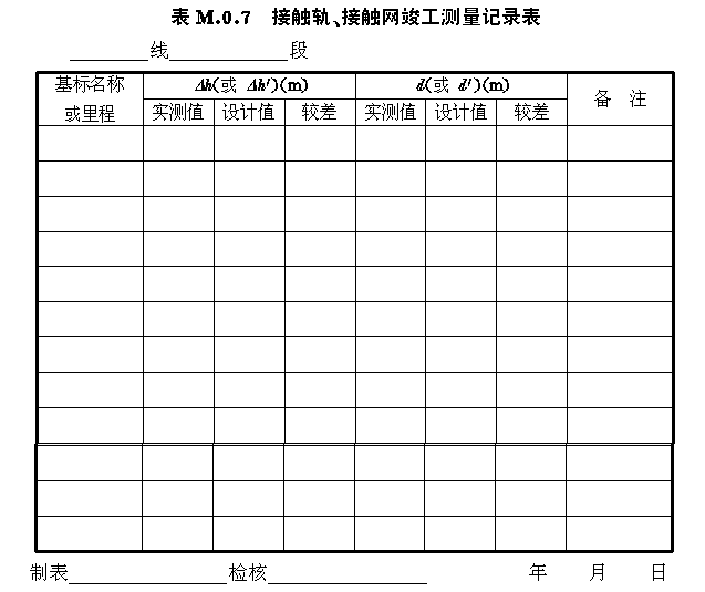 M.0.7 接触轨、接触网竣工测量记录表(见 表M.0.4 )。