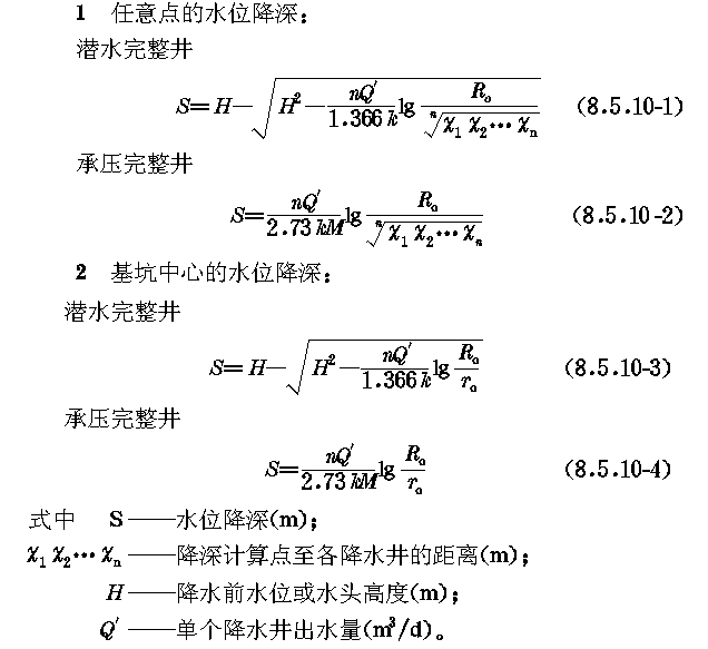 8.5.10 管井降水水位,可按含水层与降水井性质及井群排列方