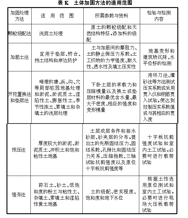 附录K土体加固方法的适用范围