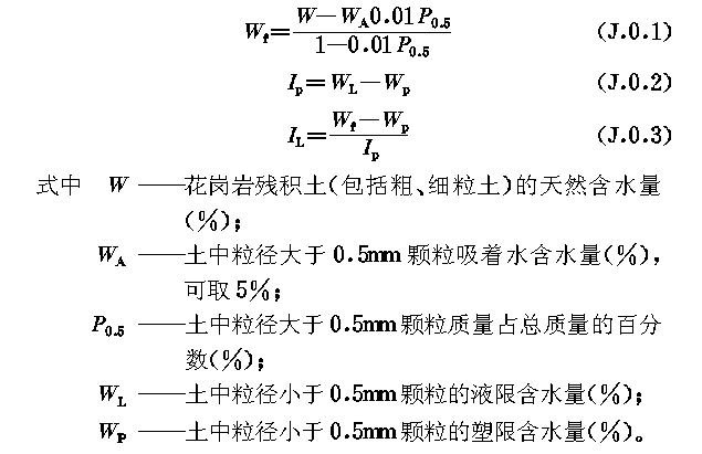 J.0.1 残积土细粒土的天然含水量W f ,塑性指数I p ,液性指数I