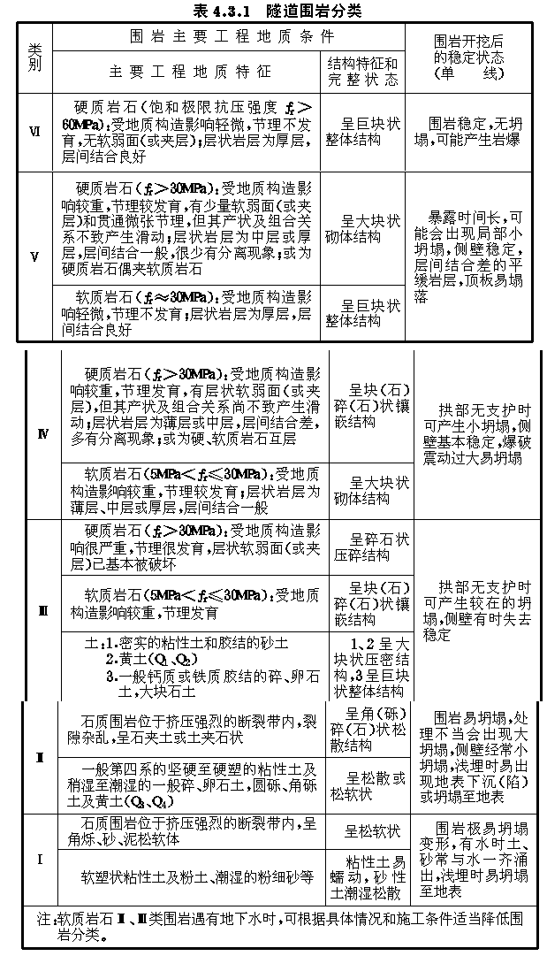4.3.1 隧道围岩应按