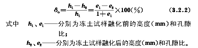 3.2.2 多年冻土的融化下沉性,根据土的融化下沉系数δo的大小.按 表3.2.2 划分为:不融沉、弱融沉、融沉、强融沉和融陷五级。冻土层的平均融沉系数δo按 下式 计算: