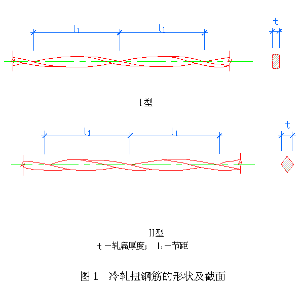 低碳钢热轧圆盘条经专用钢筋冷轧扭机调直、冷轧并冷扭一次成型,具有规定截面形状和节距的连续螺旋状钢筋( 图1 )。