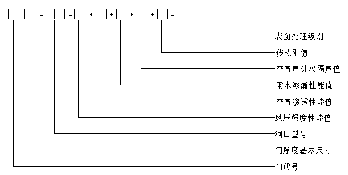 品种规格 3.1 门厚度基本尺寸系列 3.1.1 门厚度基本尺寸按门框厚度构造尺寸区分,见表1。 3.1.2 未列门厚度尺寸系列,相对于基本尺寸系列在±2mm之内,可靠近基本尺寸系列。 3.2 门洞口尺寸系列 3.2.1 门的宽度、高度构造尺寸,主要根据门框厚度构造尺寸和洞口安装要求确定。 3.2.2 基本门洞口的规格型号,见表2。 3.2.3 除表2规定外,允许门与门之间任意组合,组合后的洞口尺寸应符合GB5824的规定。 3.3 密封型式 a.密封型:用于对空气渗透性能、雨水渗漏性能有要求的门; b.非密封型:用于对空气渗透性能、雨水渗漏性能无要求的门。 3.4 按性能区分 3.4.1 依据不同建筑物的使用要求,按风压强度、空气渗透和雨水渗漏的三项性能指标,将产品划分为A、B、C三类,见表10。 3.4.2 按空气声隔声性能对产品进行区分,凡空气声计权隔声量≥25dB时为隔声门,见表11。 3.4.3 按保温性能对产品进行区分,凡传热阻值≥0.25m2·K燉W时为保温门,见表12。 3.5 按表面处理方法区分a.阳极氧化法; b.阳极氧化覆合表膜法。 3.6 标记示例 例1:TLM90-1824-1500·3.0·100·25·0.25/Ⅱ TLM——推拉铝合金门; 90——门厚度基本尺寸为90mm; 1824——洞口宽度为1800mm,洞口高度为2400mm; 1500——风压强度性能值为1500Pa; 3.0——空气渗透性能值为3.0m3/m·h; 100——雨水渗漏性能值为100Pa; 25——空气声计权隔声值为25dB; 0.25——传热阻值为0.25m2·K/W; Ⅱ——阳极氧化膜厚度为Ⅱ级。 例2:TLM70-1521-2000·0·100-TⅡ TLM——推拉铝合金门; 70——门厚度基本尺寸为70mm; 1521——洞口宽度为1500mm,洞口高度为2100mm; 2000——风压强度性能值为2000Pa; 0——空气渗透性能无要求; 100——雨水渗漏性能值为100Pa; ——隔声、保温性能无要求; TⅡ——阳极氧化覆合表膜厚度为TⅡ级。 注:在产品上做标记时,可省略性能及膜厚标记。 |