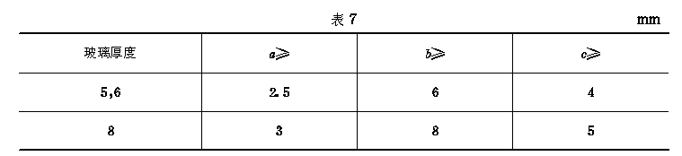 技术要求 4.1 材料 4.1.1 门用材料及附件应符合现行国家标准、专业标准或部标准,参考附录A(参考件)。 4.1.2 选用的附件材料除不锈钢外,应经防腐蚀处理,不允许与铝合金型材发生接触腐蚀。 4.2 表面处理 4.2.1 铝合金型材表面阳极氧化膜厚度分级见表3。 4.2.2 铝合金型材表面阳极氧化覆合表膜厚度分级见表4。 4.3 装配要求 4.3.1 门框尺寸偏差要求见表5。 4.3.2 门框、扇各相邻构件装配间隙及同一平面高低差要求见表6。 4.3.3 门构件连接应牢固,需用耐腐蚀的填充材料使连接部分密封、防水。 4.3.4 门结构应有可靠的刚性,根据需要允许设置加固件。 4.3.5 门框、扇配合严密、间隙均匀。其扇与框的搭接宽度允许偏差±1mm。 4.3.6 门用附件安装位置正确、齐全、牢固,应起到各自的作用,并具有足够的强度、启闭灵活、无噪声; 承受反复运动的附件,在结构上应便于更换。 4.3.7 门用玻璃、五金、密封等附件,其质量应与门的质量等级相适应。 4.3.8 门玻璃槽与玻璃的配合 4.3.8.1 平板玻璃与门玻璃槽的配合尺寸、名称见图1、表7。 4.3.8.2 中空玻璃与门玻璃槽的配合尺寸、名称见图2、表8。 4.3.9 装配后应保证玻璃与镶嵌槽间隙,并在主要部位装有减震垫块,使其能缓冲启闭等力的冲击。 4.3.10 未注公差尺寸,应符合GB1804中规定的公差等级JS15(js15)。 4.4 表面质量 4.4.1 门装饰表面不应有明显的损伤,每樘门局部擦伤、划伤的规定见表9。 4.4.2 门上相邻构件着色表面不应有明显的色差。 4.4.3 门表面不应有铝屑、毛刺、油斑或其他污迹,装配连接处不应有外溢的胶粘剂。 4.5 性能 4.5.1 风压强度、空气渗透和雨水渗漏性能见表10。 4.5.2 隔声门的空气声隔声性能分级值见表11。 4.5.3 保温门的保温性能分级见表12。 4.5.4 启闭性能 启闭力应不大于50N。 |
