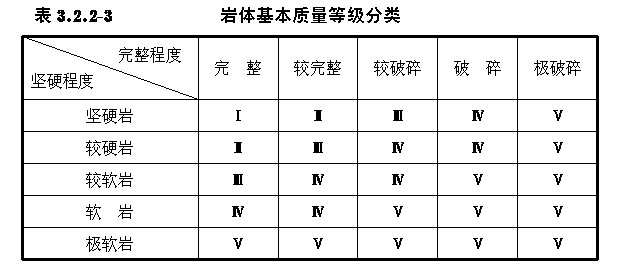 3.2.2 岩石坚硬程度、岩体完整程度和岩体基本质量等级的划分,应分别按 表3.2.2/1 、 3.2.2/2 、 表3.2.2/3 执行。