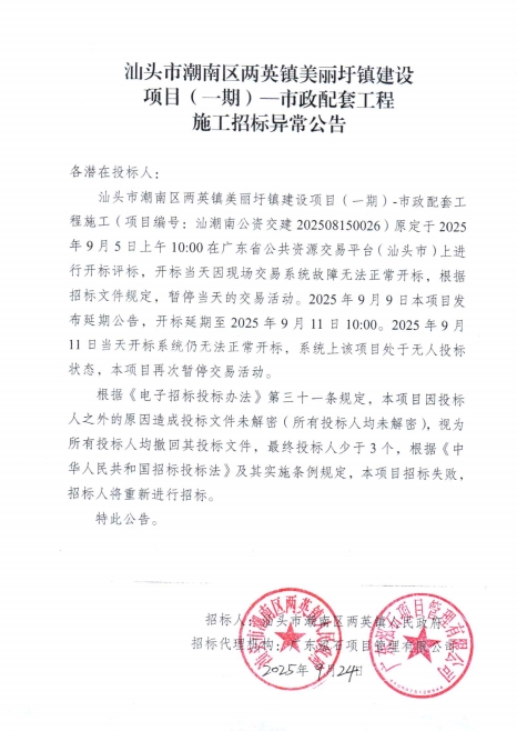 汕头市潮南区两英镇美丽圩镇建设项目(一期)-市政配套工程施工